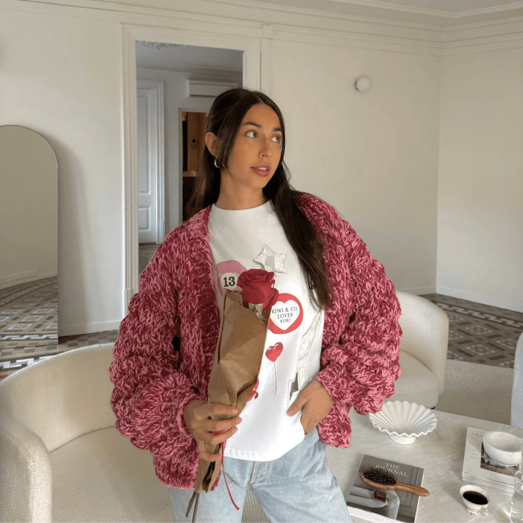 Fall in love with the charming Cherub Love Note Cardigan, a fresh and feminine twist on our classic style. This cardigan features a contrast of soft and strong pinks, and delicate details, including a cozy, chunky knit that wraps you in warmth and comfort. With its relaxed fit, it’s perfect for layering over your favourite outfits or styling as the star of the show.